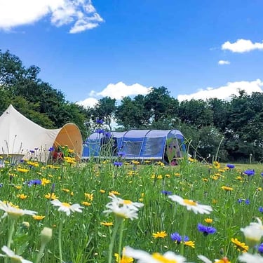 We are a small, family run site offering 10 well spaced camping pitches and one fully furnished Bell tent for hire. With ample space to relax and unwind, our campsite offers the perfect escape from the hustle and bustle of everyday life.